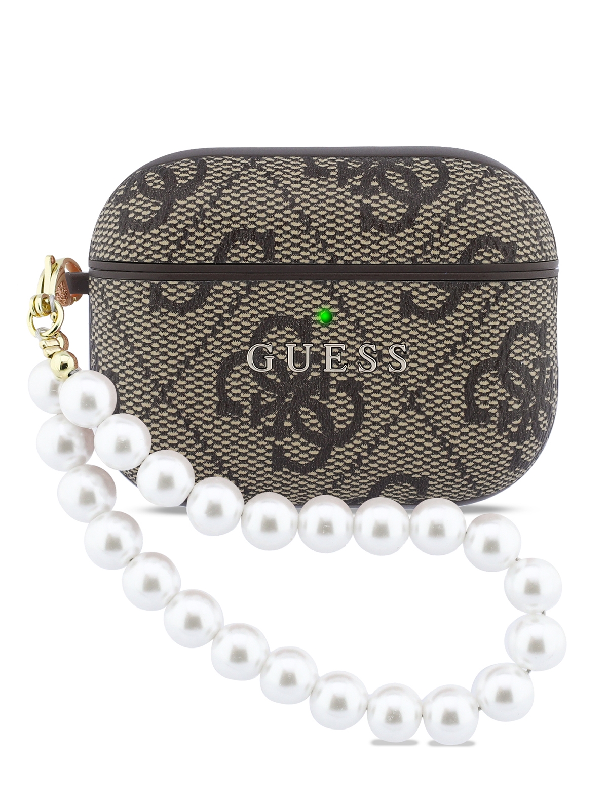 Чехол Guess для Airpods Pro 3 PU leather 4G with Classic metal logo and Pearl hand strap Brown